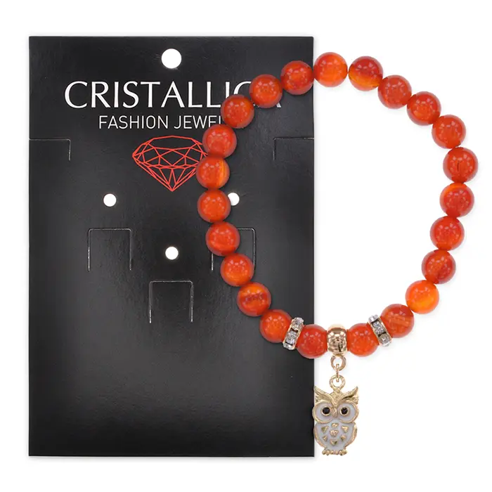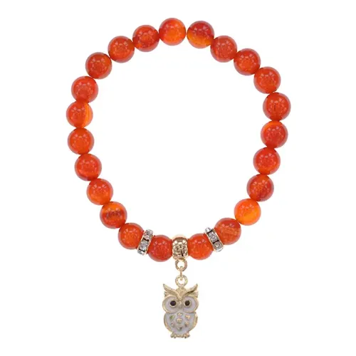 Браслет Сова (знания, счастье, успех) нат.камень Сердолик 8мм BS-CR-0557