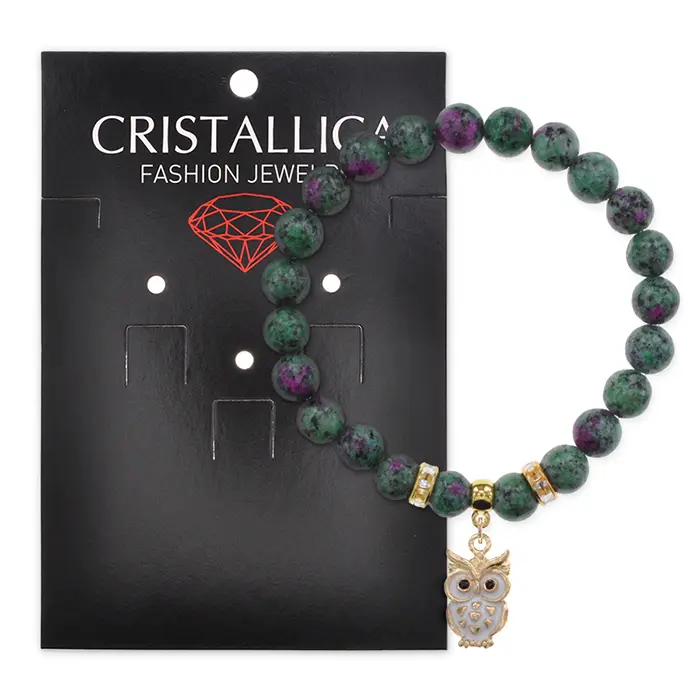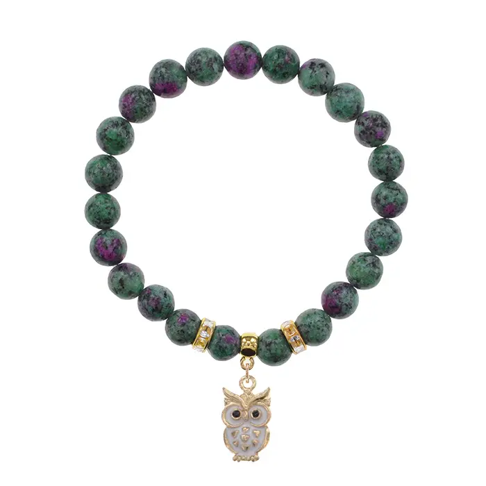 Стрейч-браслет из синтетического камня с подвеской в виде совы.