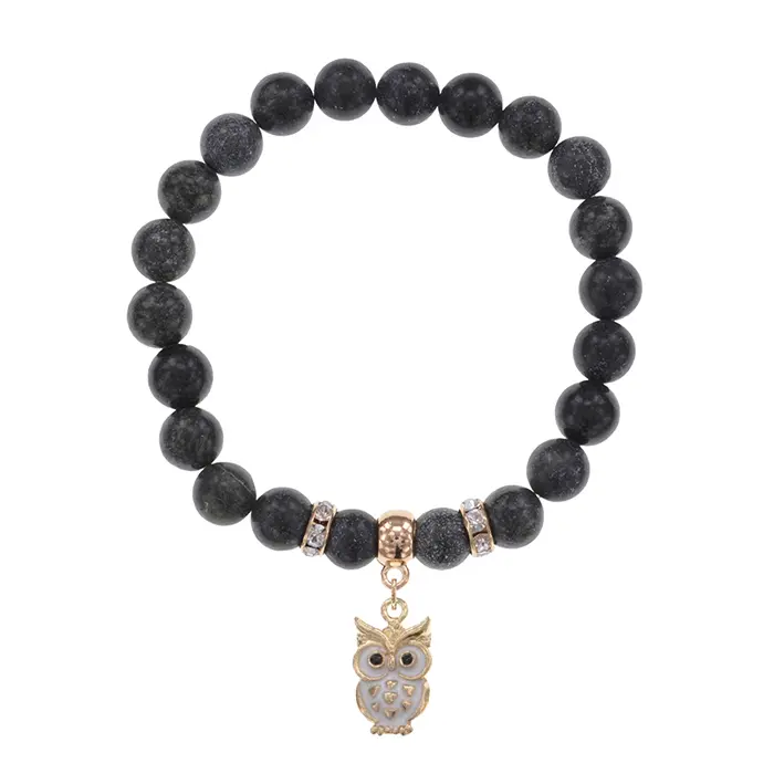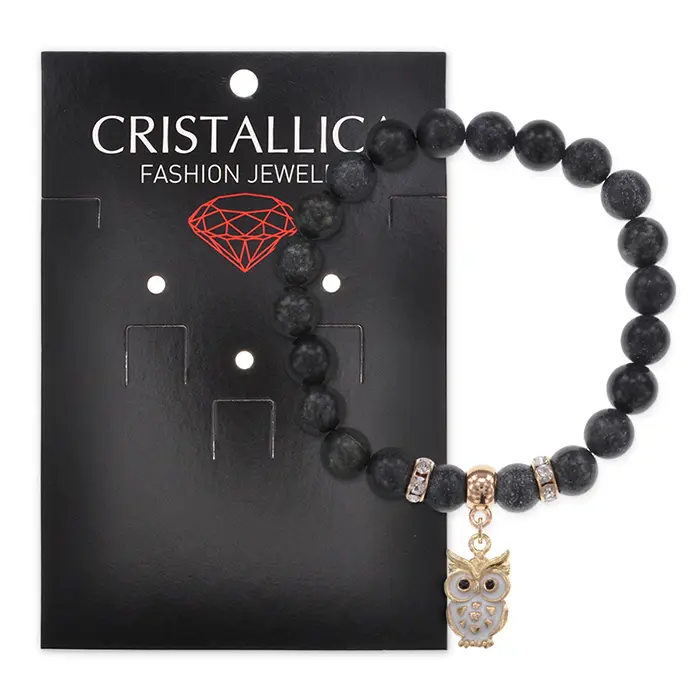 Браслет Сова (знания, счастье, успех) нат.камень Змеевик 8мм BS-CR-0569