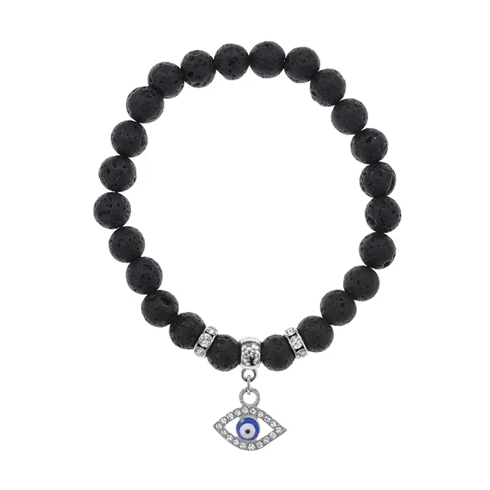 Браслет Глаз (от сглаза и порчи) нат.камень Лава 8мм BS-CR-0579