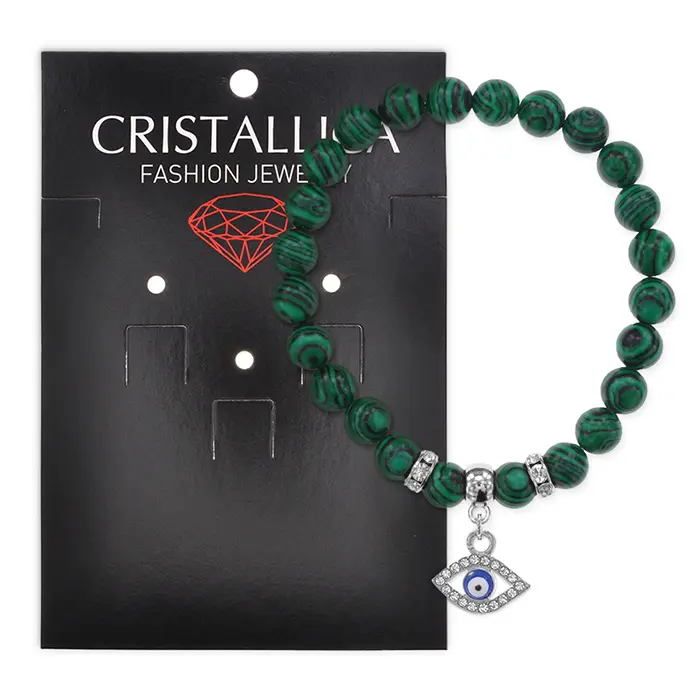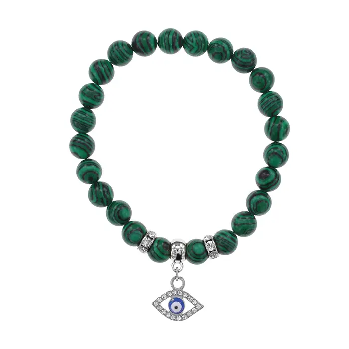 Браслет Глаз (от сглаза и порчи) синт.камень Малахит 8мм BS-CR-0582