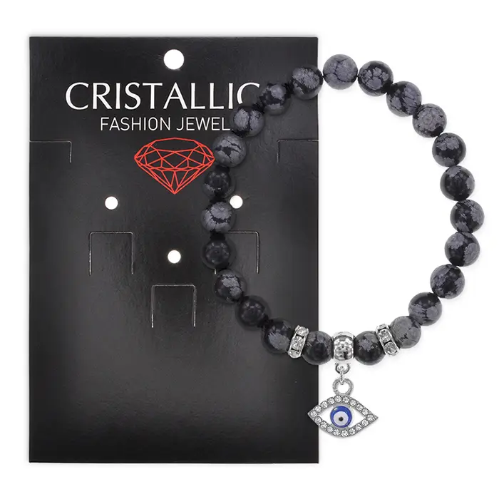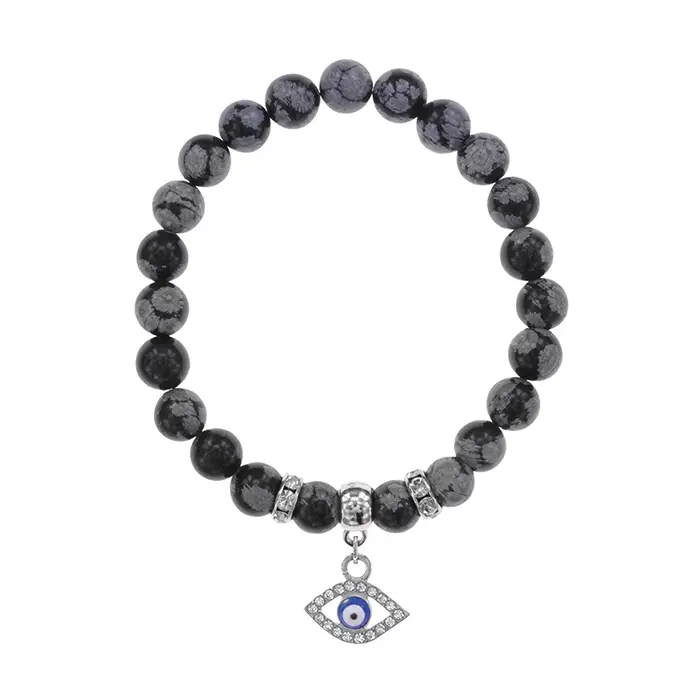 Браслет Глаз (от сглаза и порчи) нат.камень Снежный обсидиан 8мм BS-CR-0584