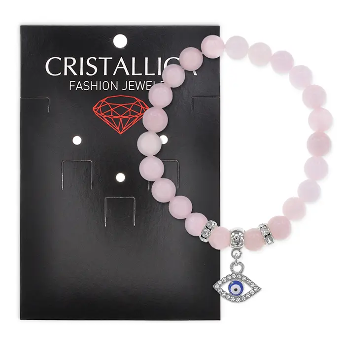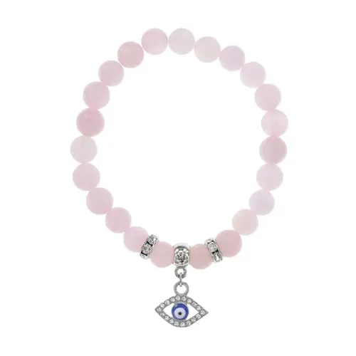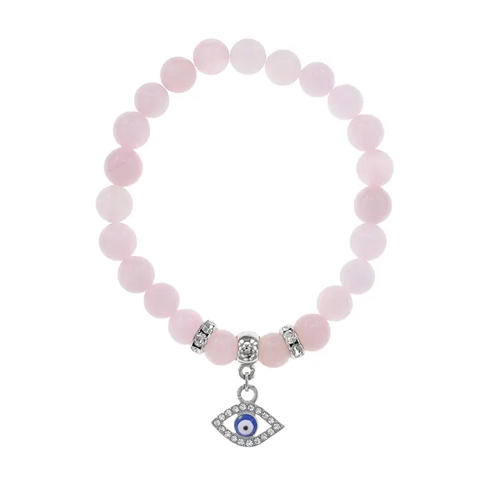 Браслет Глаз (от сглаза и порчи) нат.камень Розовый кварц 8мм BS-CR-0585