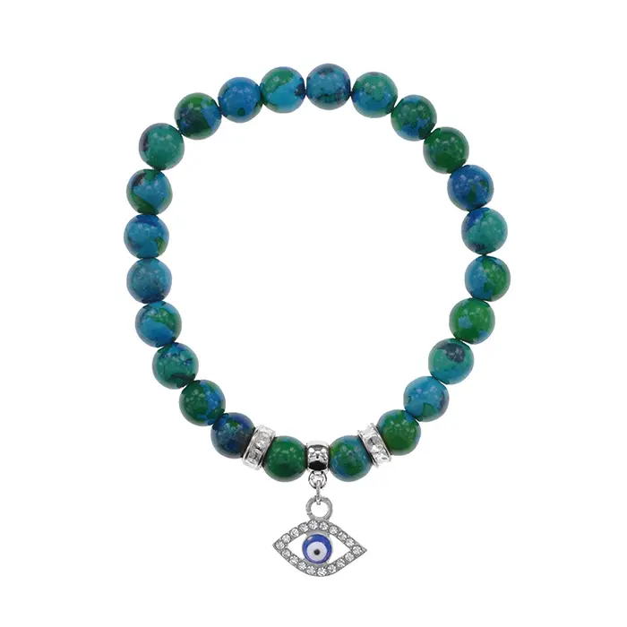 Браслет Глаз (от сглаза и порчи) синт.камень Хризоколла 8мм BS-CR-0591
