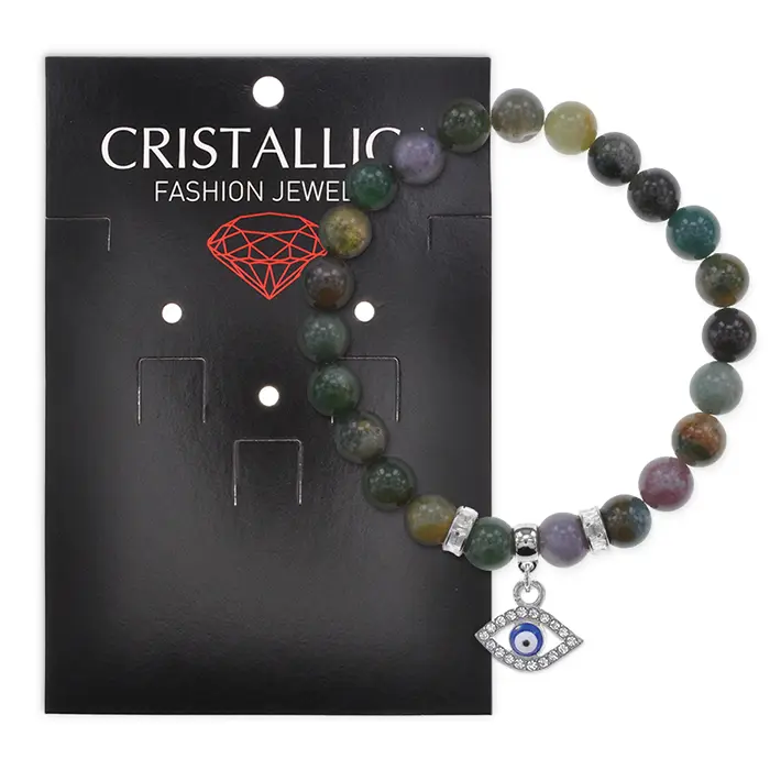 Браслет из натуральной яшмы с дизайном «Глаз» и стразами. Сувенирный аксессуар.
