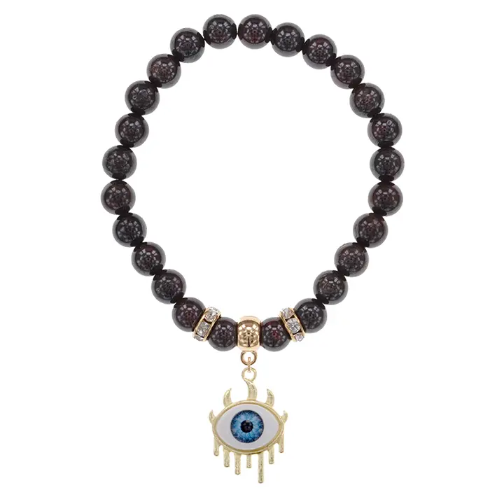 Стрейч-браслет из натурального граната с подвеской в виде глаза.