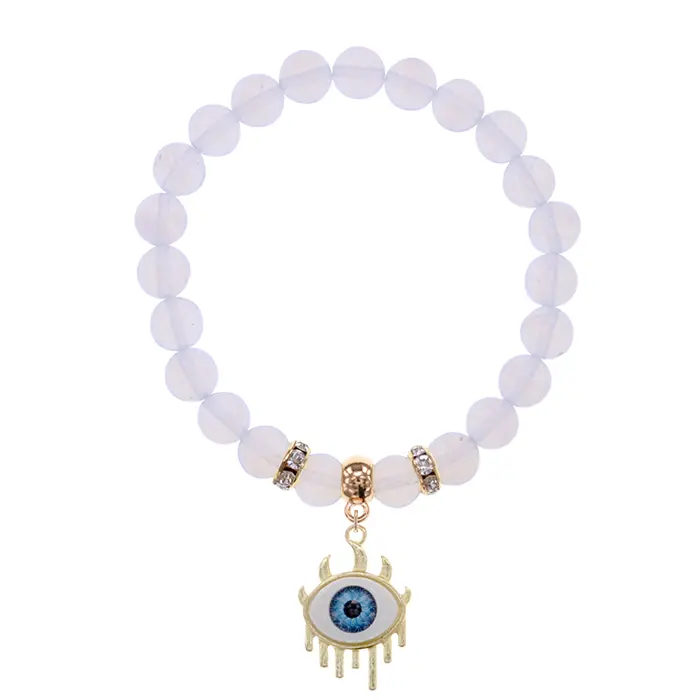 Браслет Глаз (от сглаза и порчи) синт.камень Лунный камень 8мм BS-CR-0611