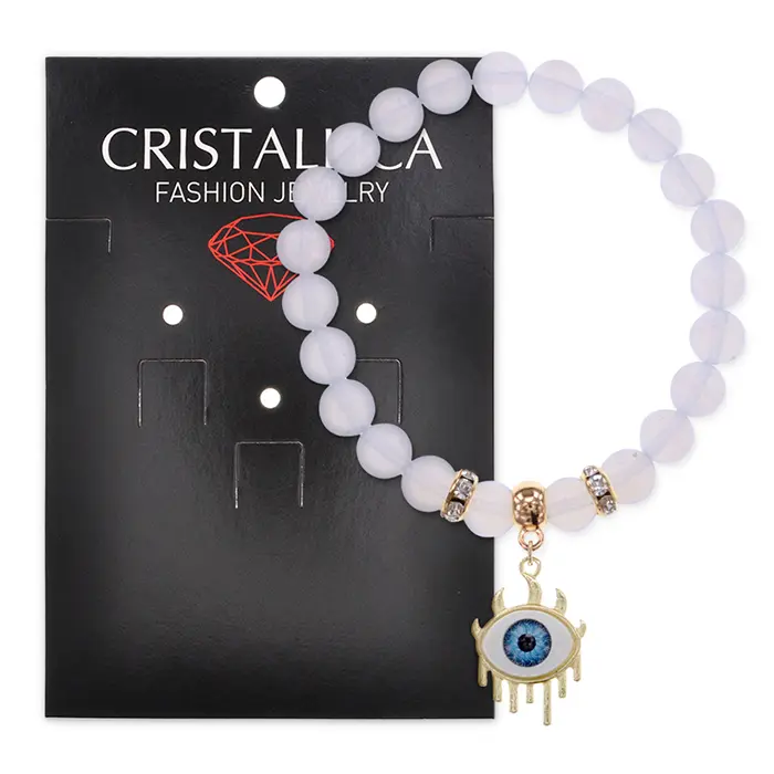 Стрейч-браслет из коллекции Cristallica с бусинами из натурального лунного камня и элементами в виде глаза.