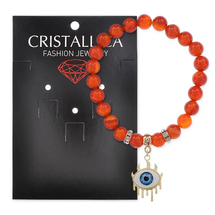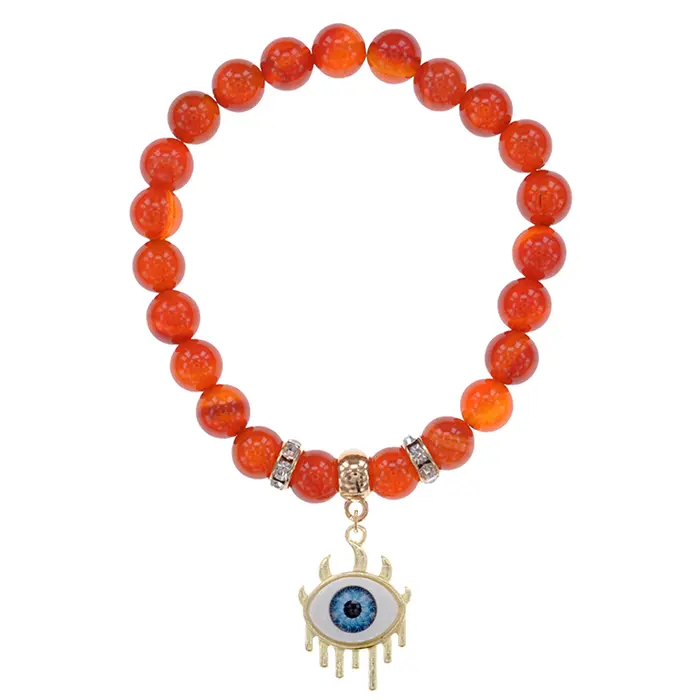 Стрейч-браслет из натурального сердолика с бусинами в виде глаза.