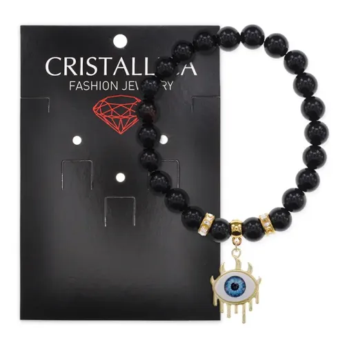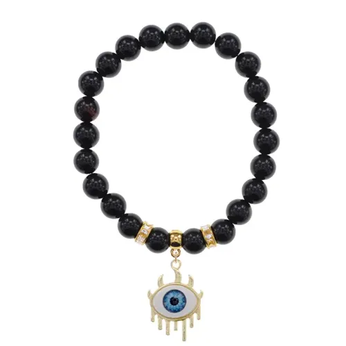 Браслет Глаз (от сглаза и порчи) нат.камень Черный агат 8мм BS-CR-0623