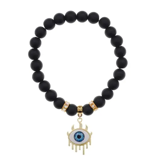 Браслет для ношения, изготовленный из синтетического камня шунгит с бусинами в виде глаза. Стрейч-браслет из коллекции Cristallica.