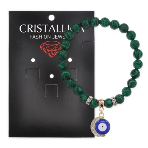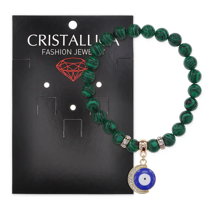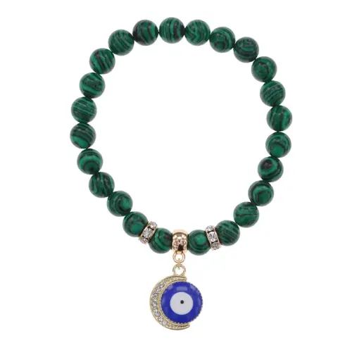 Браслет Полумесяц и Глаз (от сглаза) синт.камень Малахит 8мм BS-CR-0642