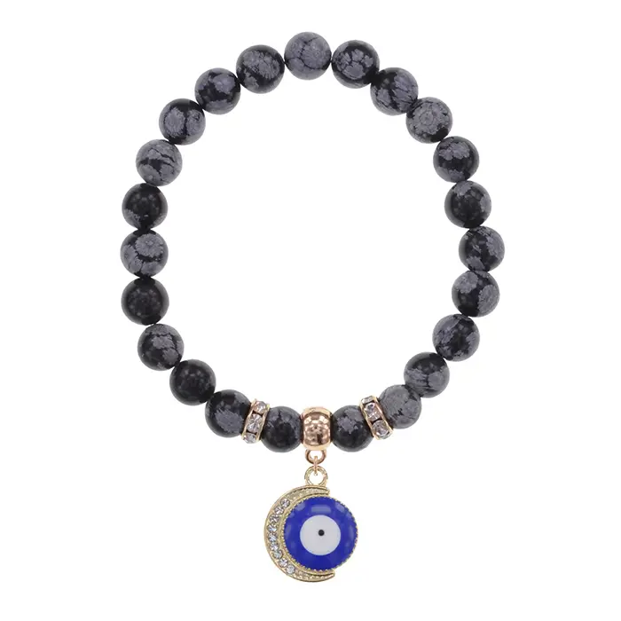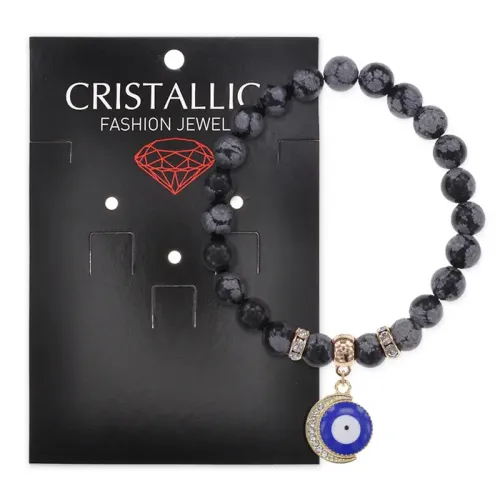 Браслет Полумесяц и Глаз (от сглаза) нат.камень Снежный обсидиан 8мм BS-CR-0644
