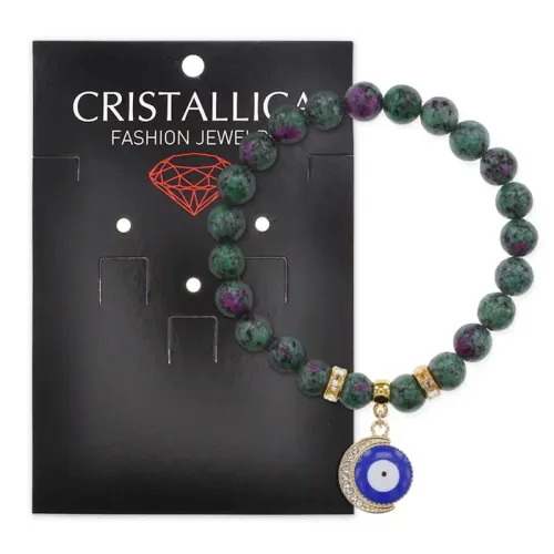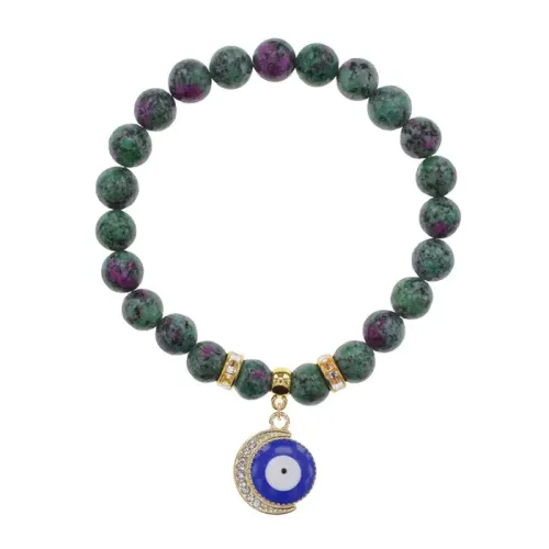 Браслет Полумесяц и Глаз (от сглаза) синт.камень Цоизит 8мм BS-CR-0652