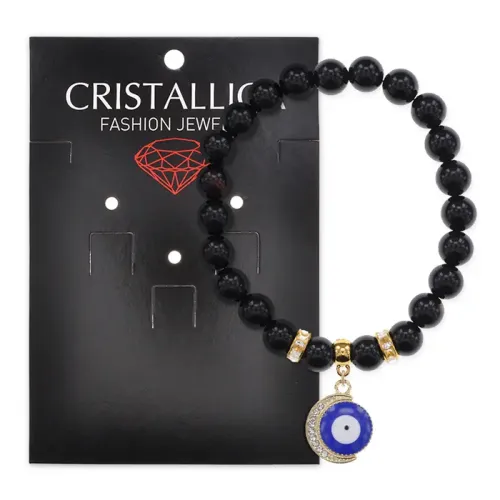 Браслет Полумесяц и Глаз (от сглаза) нат.камень Черный агат 8мм BS-CR-0653