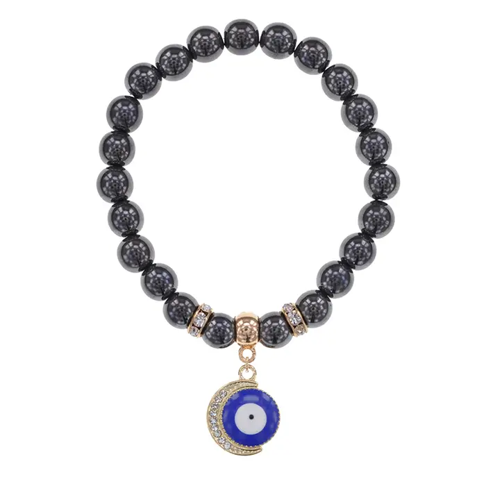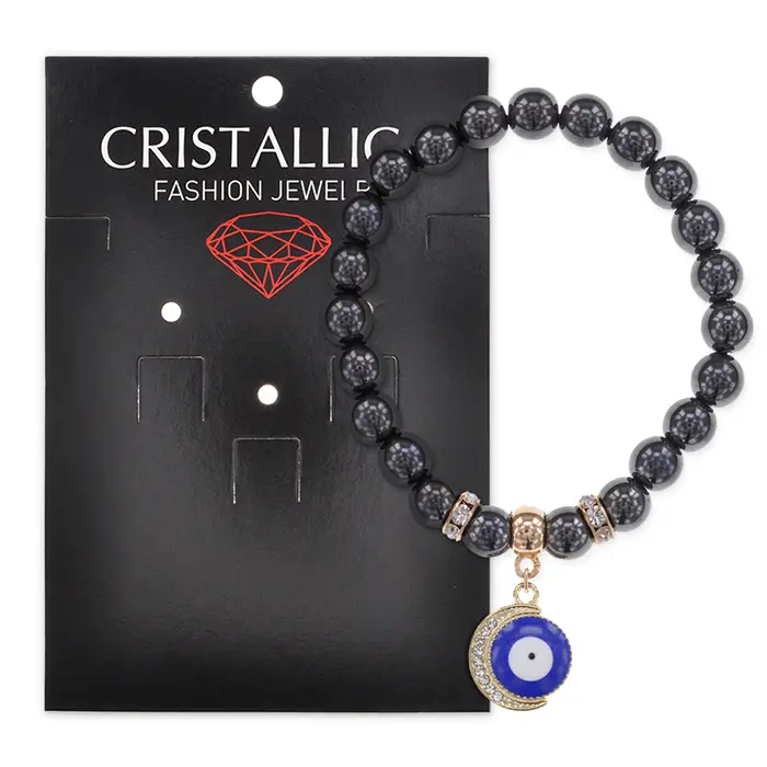Браслет Полумесяц и Глаз (от сглаза) синт.камень Гематит 8мм BS-CR-0658