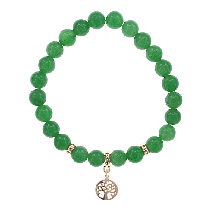 Стрейч-браслет из натурального нефрита с подвеской в виде дерева жизни.