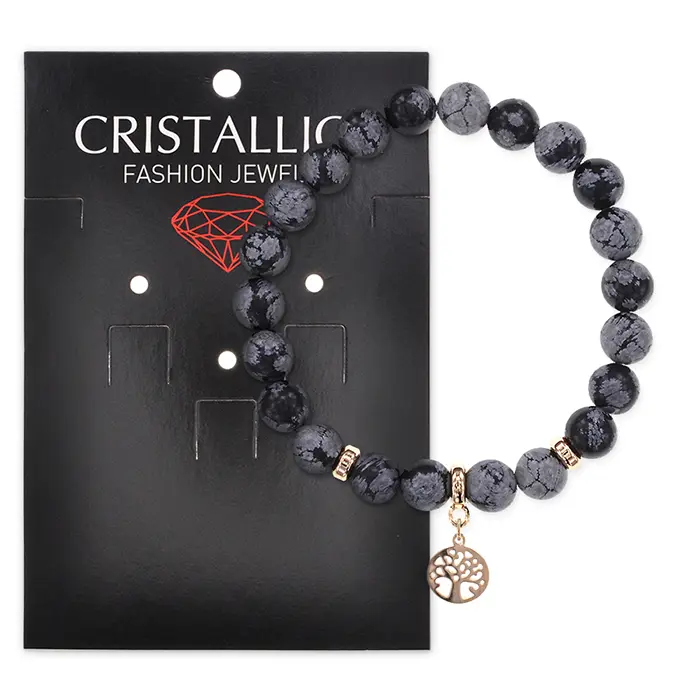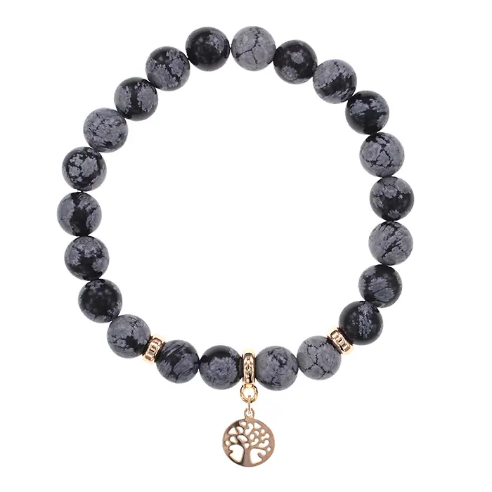 Браслет Дерево жизни (защита и развитие) нат.камень Снежный обсидиан 8мм BS-CR-0824
