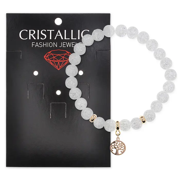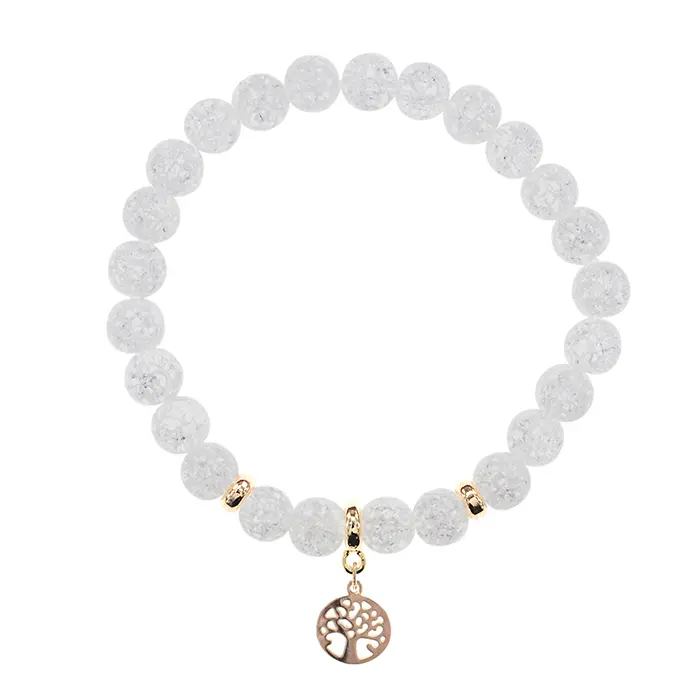 Стрейч-браслет коллекции Cristallica с бусинами из сахарного кварца и символикой «Дерево жизни».