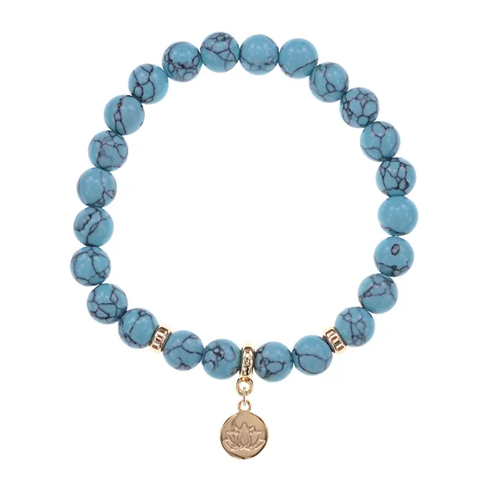 Браслет Лотос (гармония и развитие) синт.камень Бирюза 8мм BS-CR-0845