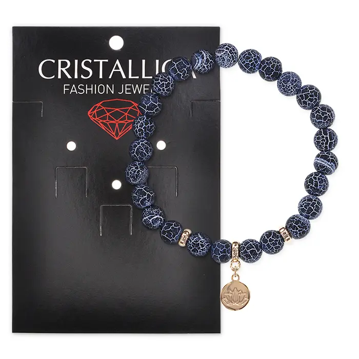 Браслет Лотос (гармония и развитие) нат.камень синий Африк. агат 8мм BS-CR-0867
