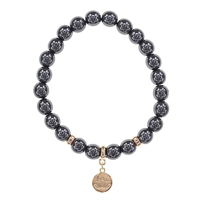 Браслет Лотос (гармония и развитие) синт.камень Гематит (не магнит.) 8мм BS-CR-0868