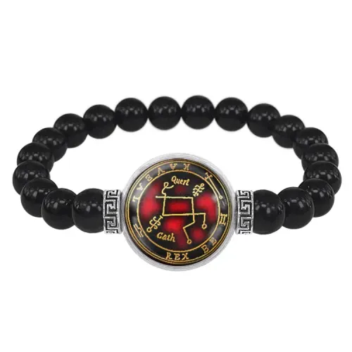 Стрейч-браслет амулет из чёрного агата с изображением под выпуклой стеклянной линзой.