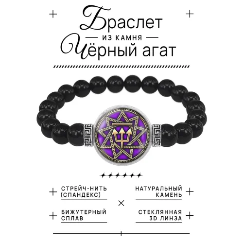 Размеры и комплектация: Диаметр бусин 8 мм, диаметр центрального изображения 20 мм, внутренний диаметр браслета примерно 5.5 см. Упаковка — прозрачный полипропиленовый пакет.