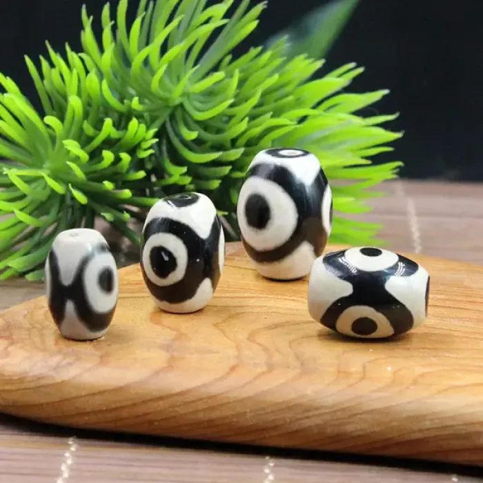 Тибетская бусина Дзи 3 глаза, нат. агат, 1 шт., 10х7,5х5мм BDZA-028