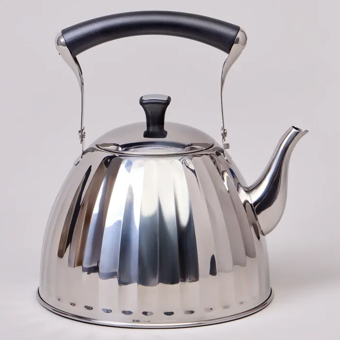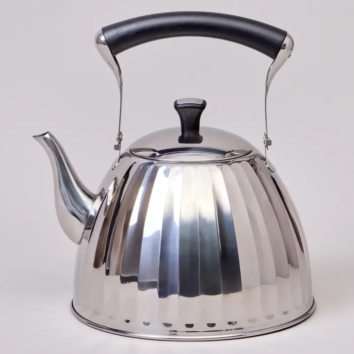 Изготовлен из нержавеющей стали, что обеспечивает прочность и гигиеничность. Капсульное дно с многослойной конструкцией обеспечивает равномерный нагрев и совместимость с индукционными плитами. Складывающаяся ручка облегчает хранение, а встроенный свисток сигнализирует о закипании воды.