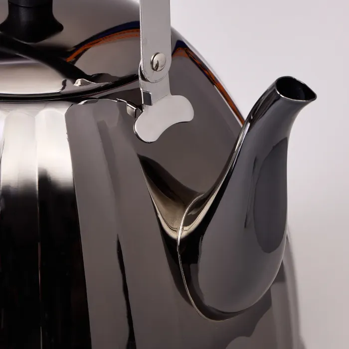 Конструкция чайника включает удобную складывающуюся ручку и встроенный свисток, который оповещает о закипании воды. Изготовленный из нержавеющей стали, он подходит для всех типов плит, включая индукционные. Этот материал известен своей прочностью и гигиеничностью.