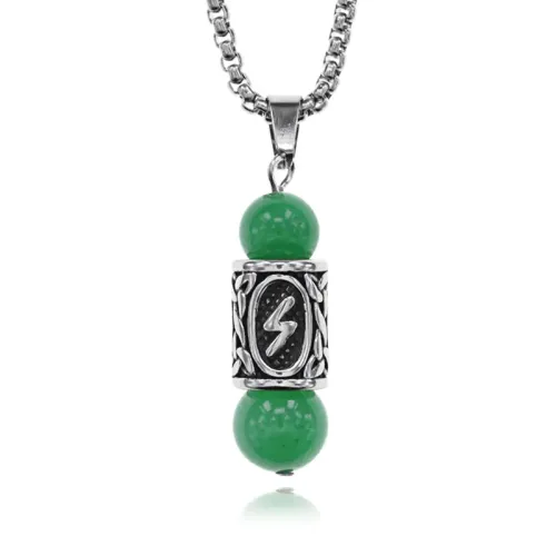 Кулон-амулет из нержавеющей стали с натуральным нефритом и руной Соулу.