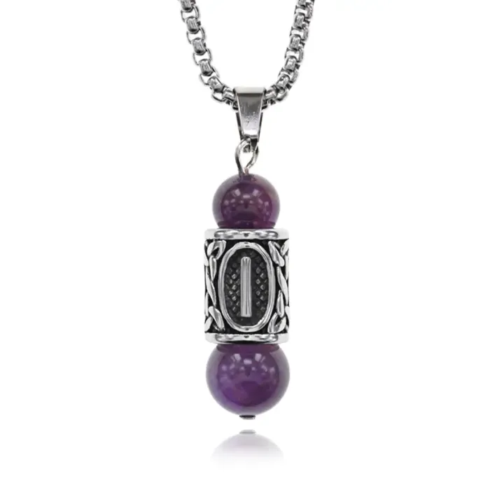 Кулон-амулет Иса с руной из нержавеющей стали, Аметист KULN-03