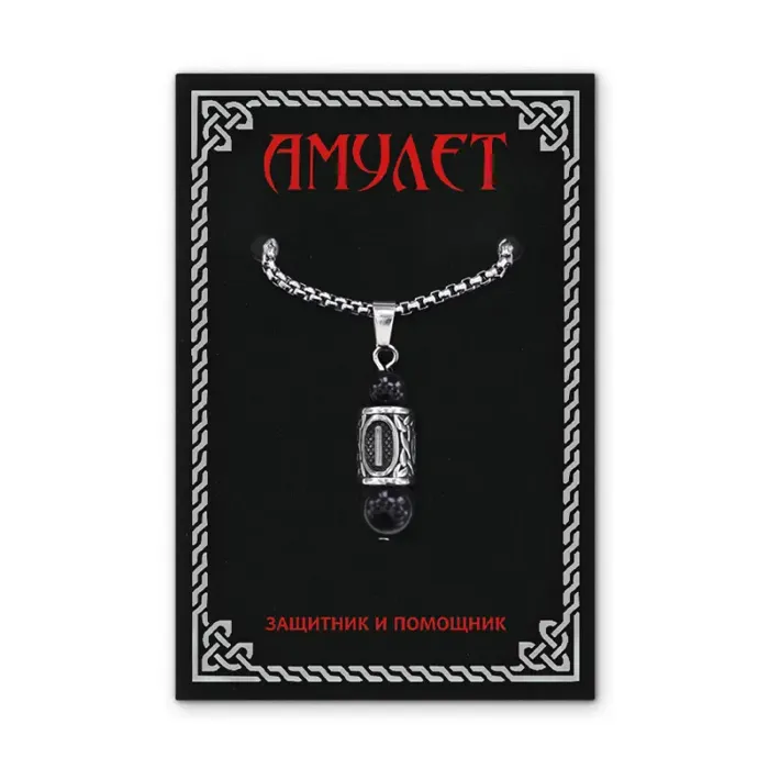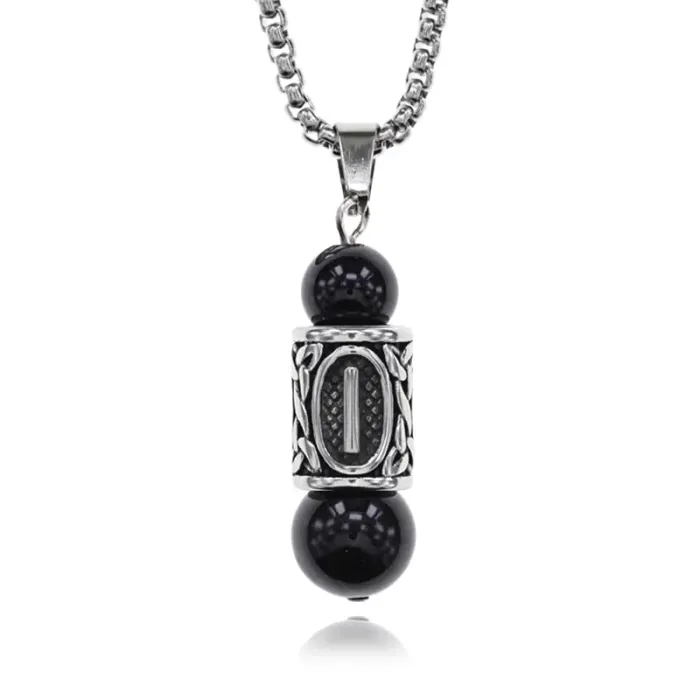 Кулон-амулет Иса с руной из нержавеющей стали, Черный агат KULN-04