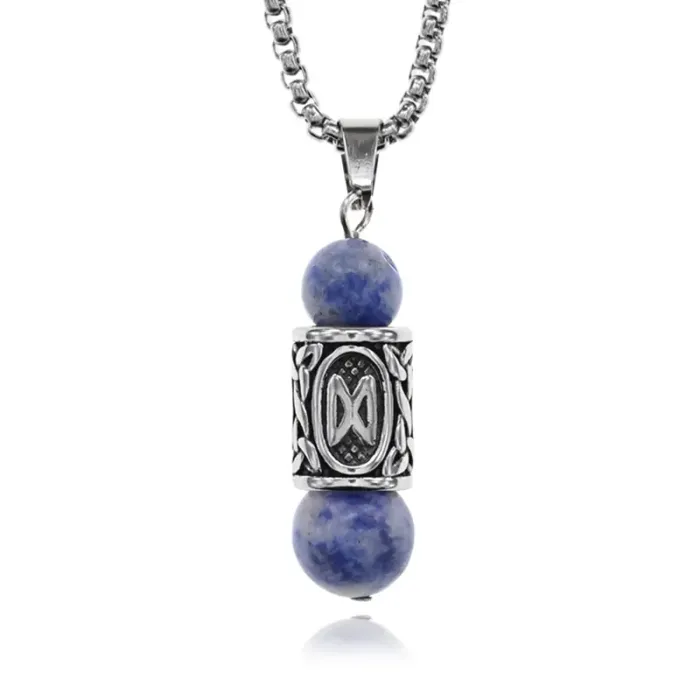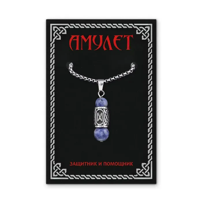 Кулон-амулет Дагаз с руной из нержавеющей стали, Содалит KULN-06