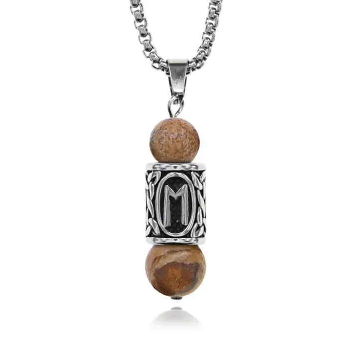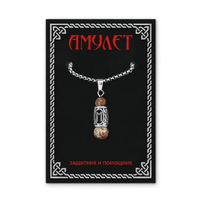 Кулон-амулет Эваз с руной из нержавеющей стали, Яшма песочная KULN-11
