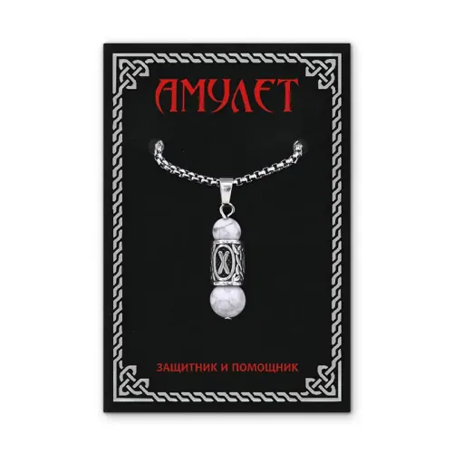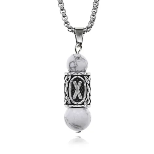 Кулон-амулет с руной Гебо из нержавеющей стали и натурального камня кахолонг.