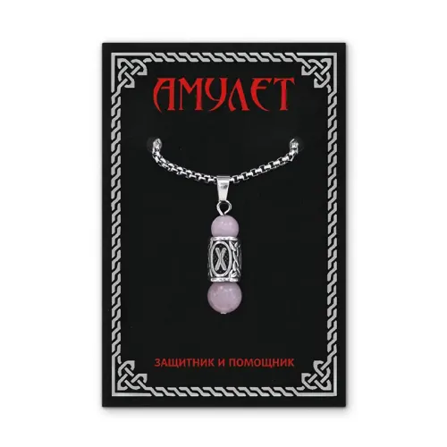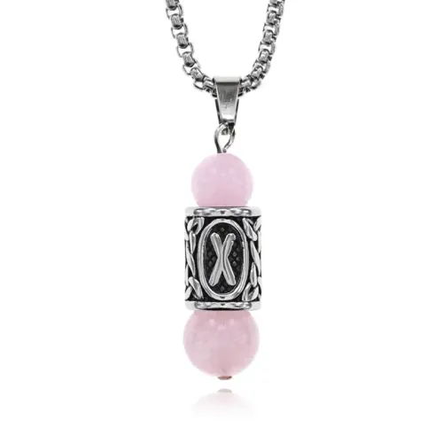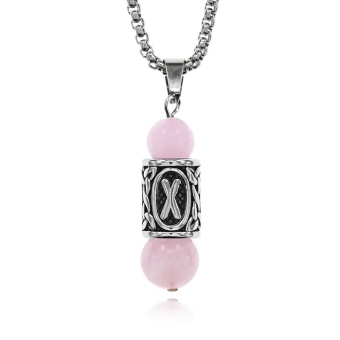 Кулон-амулет Гебо с руной из нержавеющей стали, Розовый кварц KULN-16