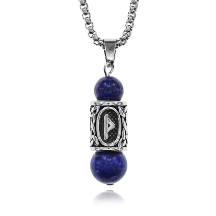 Кулон-амулет Турисаз с руной из нержавеющей стали, Лазурит KULN-18