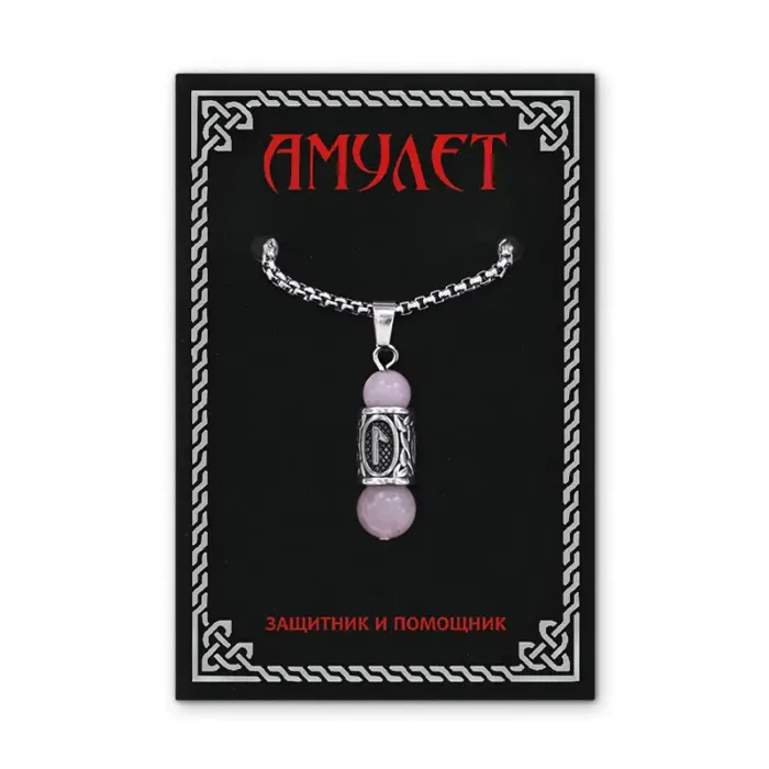 Кулон-амулет Лагуз с руной из нержав. стали, Розовый кварц KULN-21