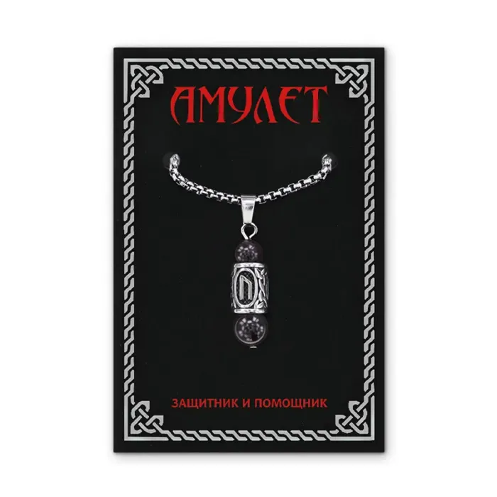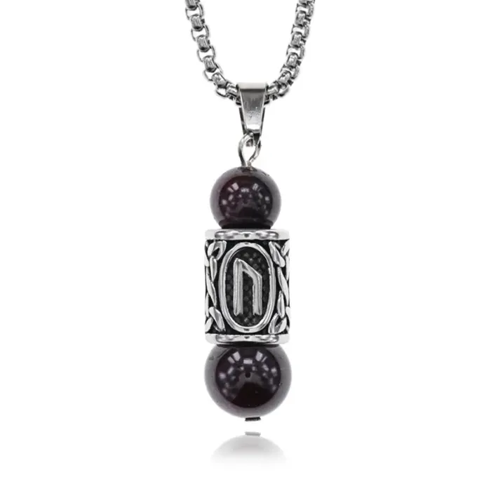 Кулон-амулет Уруз с руной из нержавеющей стали, Гранат KULN-26