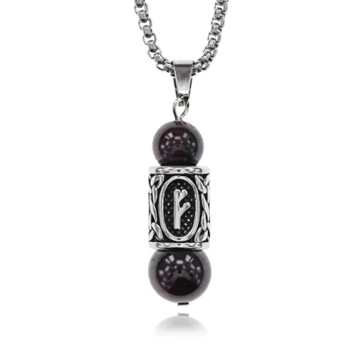 Кулон-амулет Феху с руной из нержавеющей стали, Гранат KULN-33