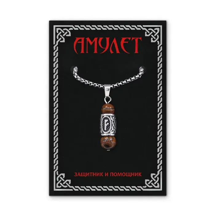 Кулон-амулет Феху с руной из нержавеющей стали, Тигровый глаз KULN-34