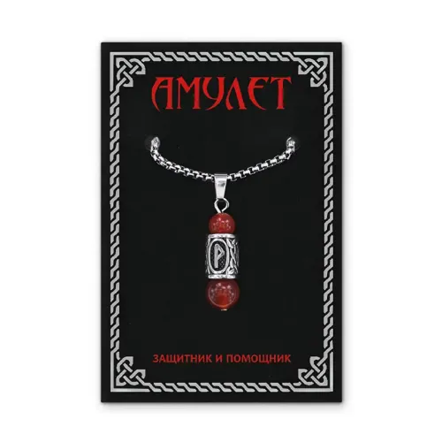 Кулон-амулет Вуньо с руной из нержавеющей стали, Сердолик KULN-36