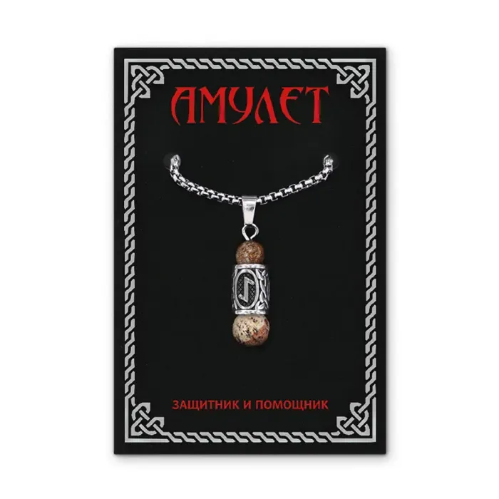 Кулон-амулет Эйваз с руной из нержавеющей стали, Яшма песочная KULN-44
