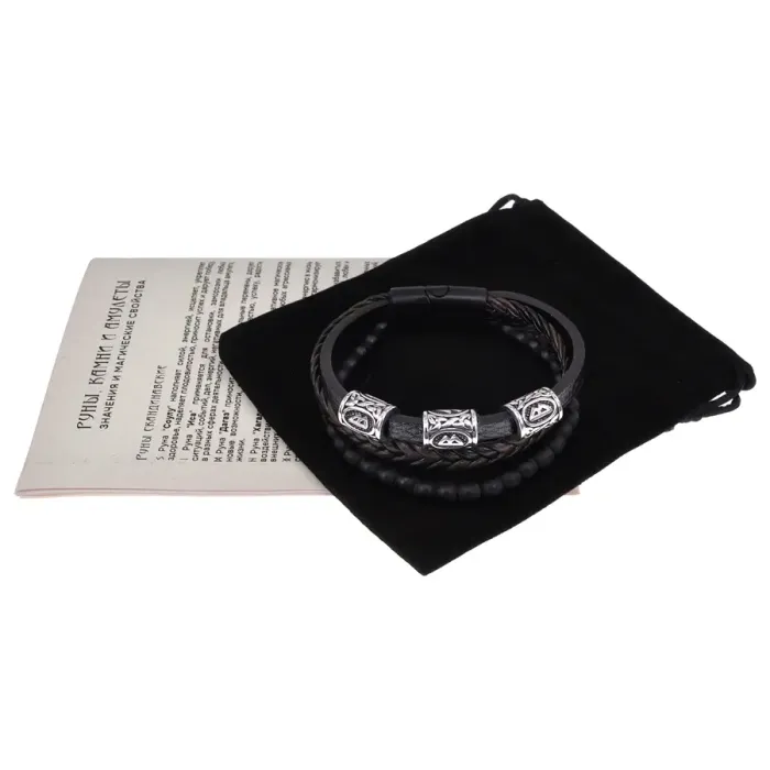 Браслет с рунической формулой Женское счастье — аксессуар из комбинированных материалов.