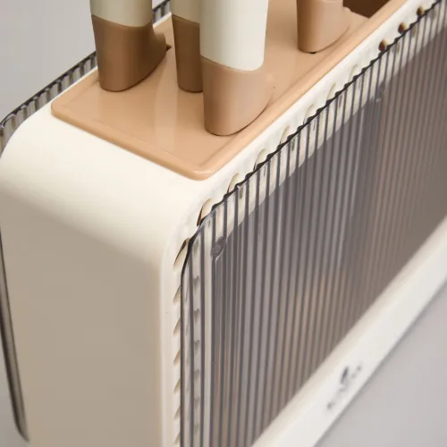 Лезвия изготовлены из коррозионностойкой стали, что обеспечивает долговечность и устойчивость к ржавчине. Каждое лезвие имеет двухстороннюю заточку для сохранения остроты режущей кромки. Эргономичные ручки спроектированы для комфортного захвата во время работы. Пластиковая подставка служит для безопасного и компактного хранения всего набора.