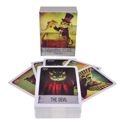 Карты Mystic Cat Tarot — это уникальная колода, состоящая из 78 карт, каждая из которых наполнена магией и символикой. Эти карты предназначены для использования в гадании и самопознании, а их стильный дизайн вдохновлён миром кошек. Размеры карт составляют 87,5x62,5 мм, что делает их удобными для работы. Коробка имеет размеры 90х65х25 мм и защищает карты от повреждений. Эта колода станет отличным подарком для любителей таро и тех, кто хочет погрузиться в мир интуитивного понимания. Инструкция не прилагается.