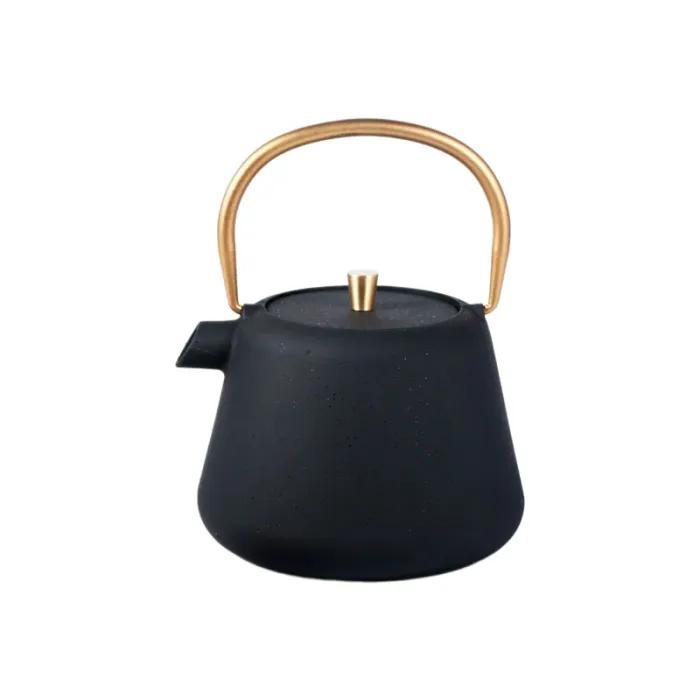 Чугунный заварочный чайник Циндао черный с золотой ручкой 1 л