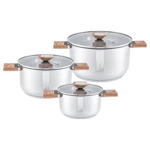 Набор посуды СМАРТ от ТМ Appetite включает шесть предметов для приготовления пищи. В комплект входят три кастрюли разного объёма со стеклянными крышками, что обеспечивает универсальность использования на кухне.